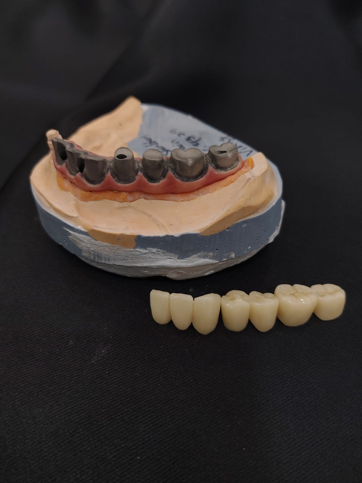 DMLS Titanium Palo Malo Bar with Zirconia is a high-end, screw-retained, full-arch dental prosthesis designed for edentulous patients. It combines a 3D-printed, highly precise Titanium framework (using Direct Metal Laser Sintering – DMLS) with individual or monolithic zirconia crowns, offering superior aesthetics, strength, and durability. This, often called the “Malo Clinic Concept,” allows for immediate, fixed restoration that feels natural, with excellent biocompatibility.A, 3D-printed titanium frame designed using DMLS technology, providing high precision, strength, and a passive fit.